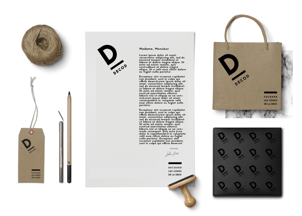 Brand identity, business cards, brand book, pages, for an interior design and design products brand .